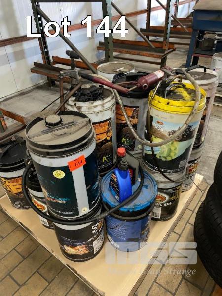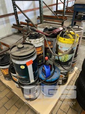 19 x PART FULL DRUMS VARIOUS OILS, GULF WESTERN & 3 x HAND PUMPS