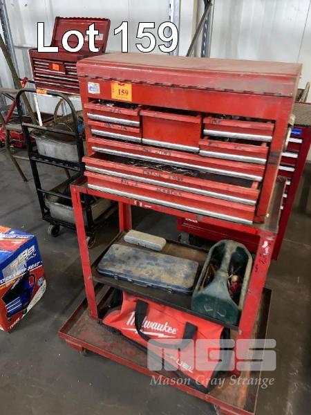 TOOL BOX, 8 DRAWER & CONTENTS ON MOBILE 2 TIER TROLLEY, SPANNERS, FILES, PLIERS & SOCKETS