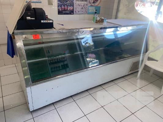 COUNTER DISPLAY FRIDGE, 2440mm SELF CONTAINED, STAINLESS STEEL CLAD, ILLUMINATED NOT WORKING