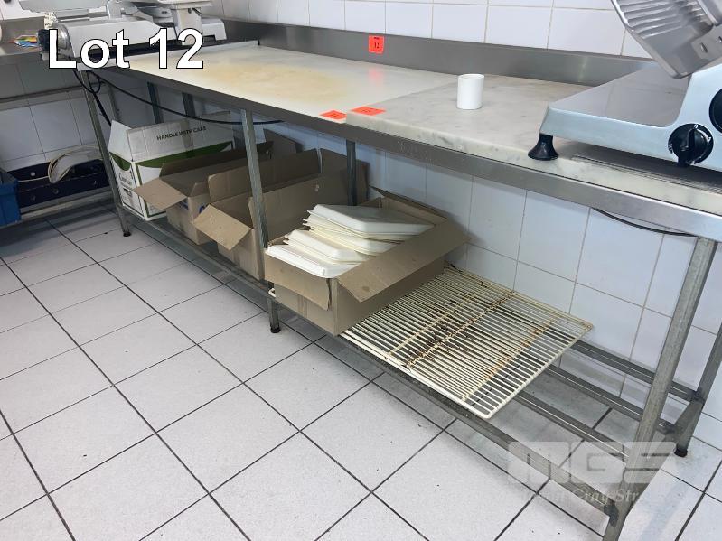 STAINLESS STEEL BENCH, 2800 x 600mm WITH SPLASHBACK, GALV FRAME