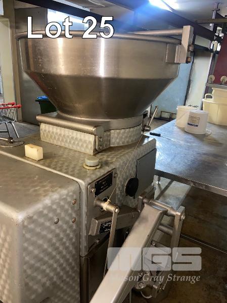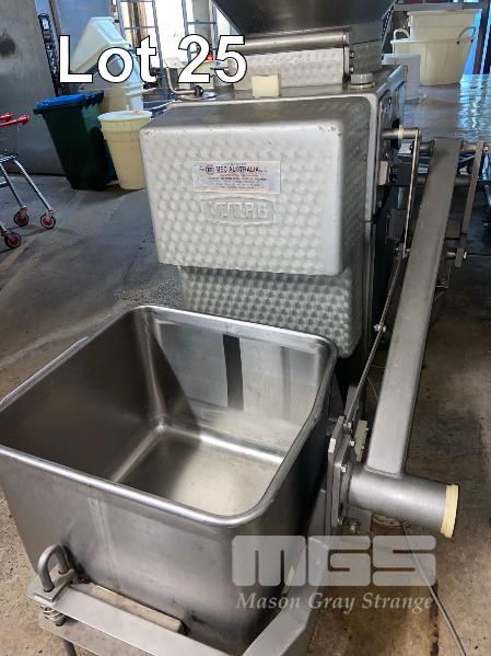 SMALLGOODS FILLER, VEMAG TYPE: 855 415V MAX PRESSURE: 135 KP cm2 & STAINLESS STEEL TIPPER TROLLEY, DOUBLE SKIN