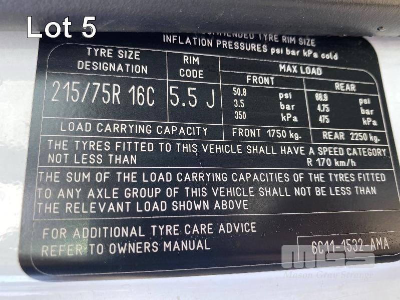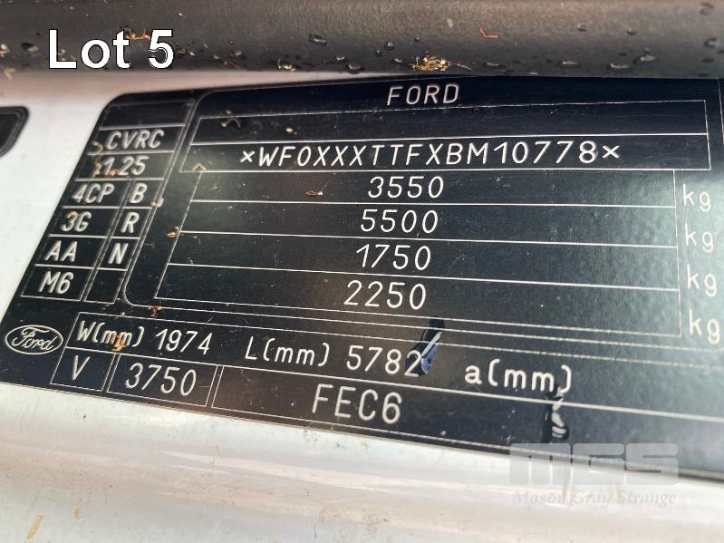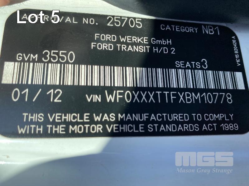 2012 FORD TRANSIT 155T350 LWB HD2 REFRIGERATED TRANSPORT VAN REG: S112 ASC VIN: WF0XXXTTFXBM10778 ODO: 353,218kms SHOWING 4 CYLINDER DIESEL TURBO, 6 SPEED MANUAL TRANSMISSION, WHITE DUCO, 2 DOORS, 3 SEAT, AIR BAG, AIR CON, CD PLAYER, CENTRAL LOCKING, IMMOBILISER, SPARE WHEEL, DOUBLE REAR DOORS, SIDE SLIDING DOOR FULLY INSULATED REAR WITH ROOF MOUNT REFRIGERATION UNIT GVM: 3,550kg KEY #12 (WITH PAPERS, WITH 1 KEY/S) CONDITION: ENGINE TURBO - TURBO ALL FAULTS, LACKS POWER