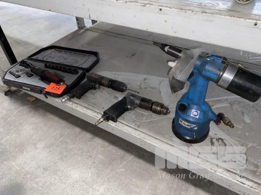 PNEUMATIC RATCHET TENG TOOLS, RACE 3/8" DRIVE & SOCKETS IN CASE, 2 x AIR DRILLS & 1 x PNEUMATIC NUT INSERT GUN, AVDEL