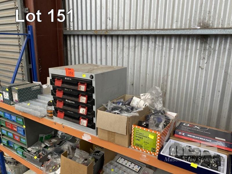 AUTO ELEC RELAYS, FUSE HOLDERS, FUSES, JOINERS, BLUE POINTS, 415V SOCKETS, PLUGS & WURTH 4 DRAWER STORAGE UNIT,