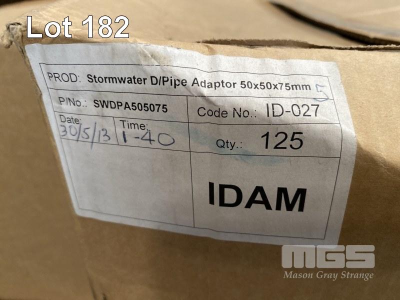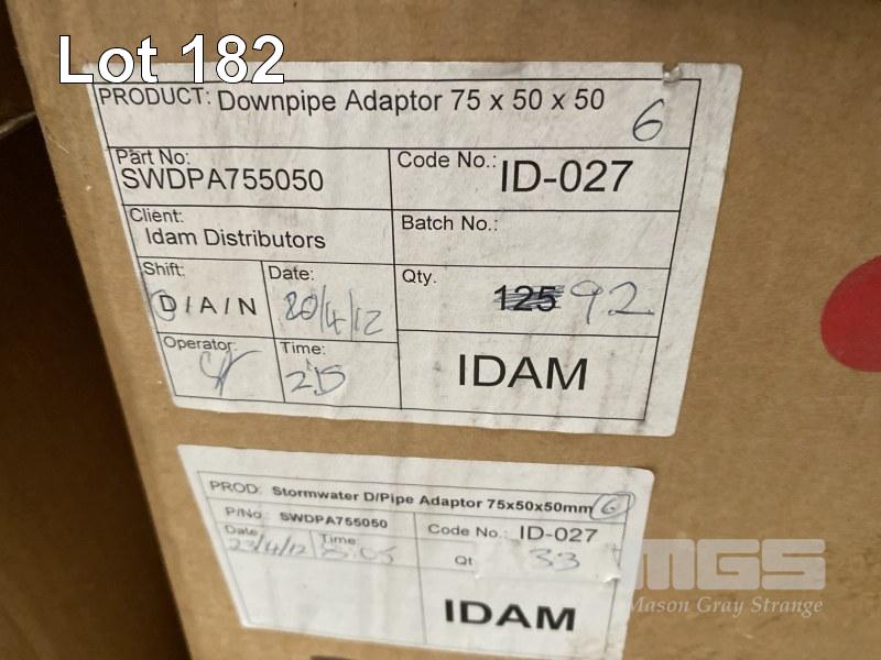 ASSORTED PVC PIPE FITTINGS INCLUDING STORMWATER D/PIPE ADAPTORS, 50 x 50 x 75mm, 80 x 80 x 75mm, DOWNPIPE ADAPTORS, 75 x 50 x 50mm, ETC