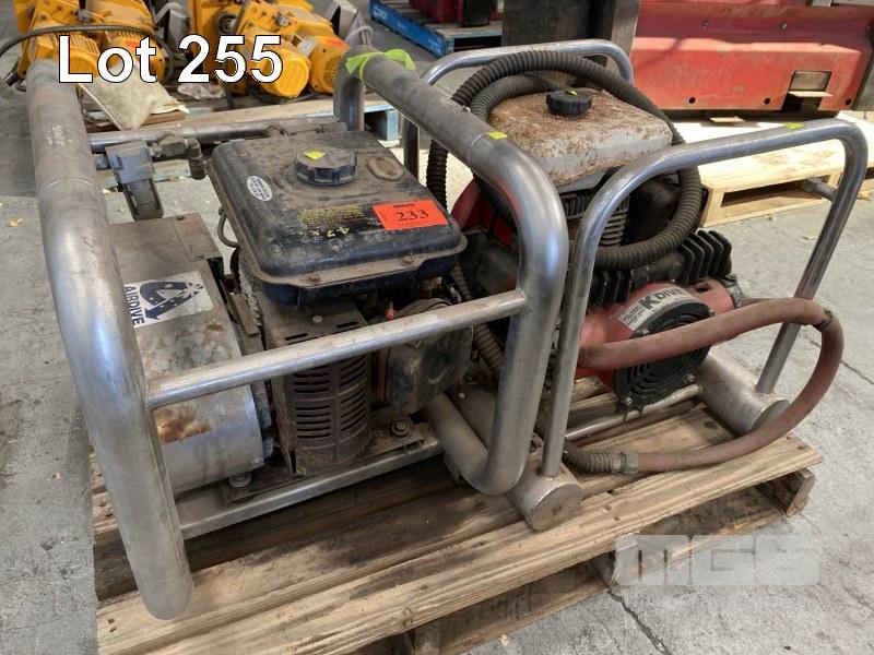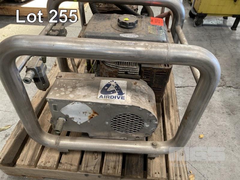 2 x DIVING AIR COMPRESSORS, INC AIR DIVE, AIR RECEIVER FRAME, STAINLESS STEEL POWERED BY KAWASAKI FG20 PETROL ENGINE & KDIVE TWIN CYLINDER COMPRESSOR POWERED BY MITSUBISHI PETROL ENGINE 1 x PALLET