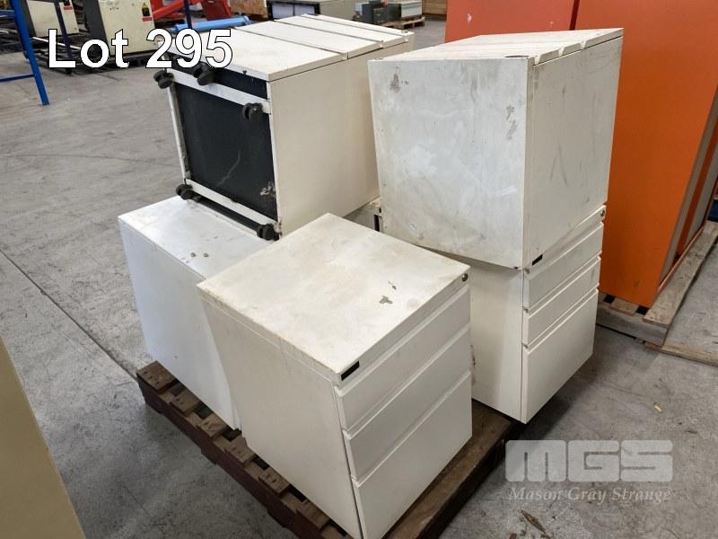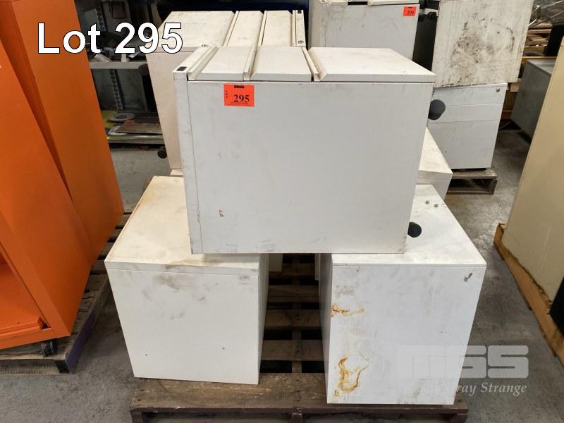 6 x UNDERDESK MOBILE UNITS, 3 DRAWER, CREAM STEEL