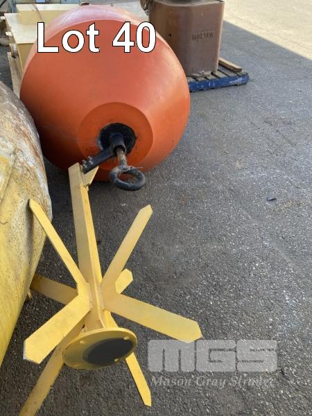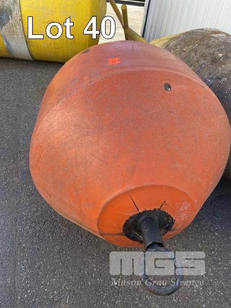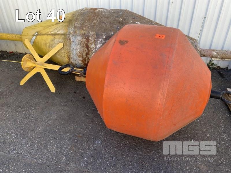 MARINE BUOY, POLY RED, CYLINDRICAL, 1100 DIA x 1200mm (L) WITH STEEL MOUNTING ATTACHMENT