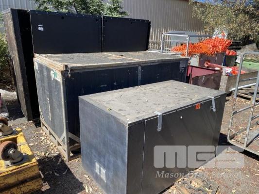 4 x ASSORTED TRAVEL/STORAGE CRATES/BOXES STEEL REINFORCED PLYWOOD CONSTRUCTIONS, SIZES INC 1600 x 850 x 900mm (H) & 2300 x 1100 x 1250mm (H)