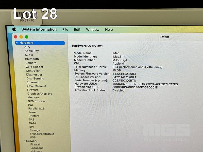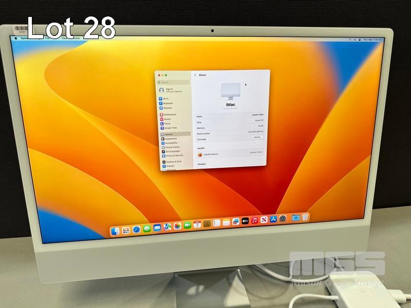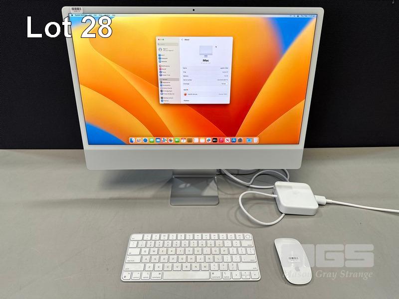 APPLE iMAC (A2438), SILVER, APPLE M1 8 CPU/8 GPU, 16GB RAM, 1TB SSD, BUILT-IN 24" RETINA DISPLAY (4480 x 2520), Wi-Fi, BLUETOOTH, MAC OS 13 INSTALLED, KEYBOARD (A2449), MOUSE (A1657) & POWER SUPPLY S/N:C02JN0CQ0RTN