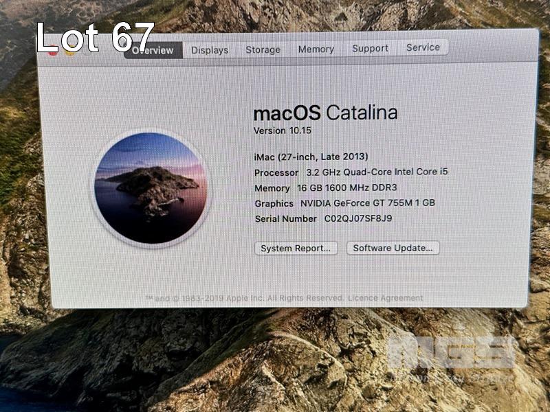 APPLE iMAC (A1419), CORE i5 4570 (4TH GEN) @ 3.2GHz, 16GB DDR3 RAM, 256GB SSD, BUILT-IN 27" DISPLAY (2560x1440), 1GB NVIDIA GEFORCE GT 755M VIDEO, Wi-Fi, BLUETOOTH, MAC OS 10.15 INSTALLED (NO KEYBOARD, NO MOUSE) S/N:C02QJ07SF8J9