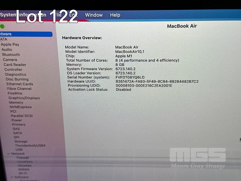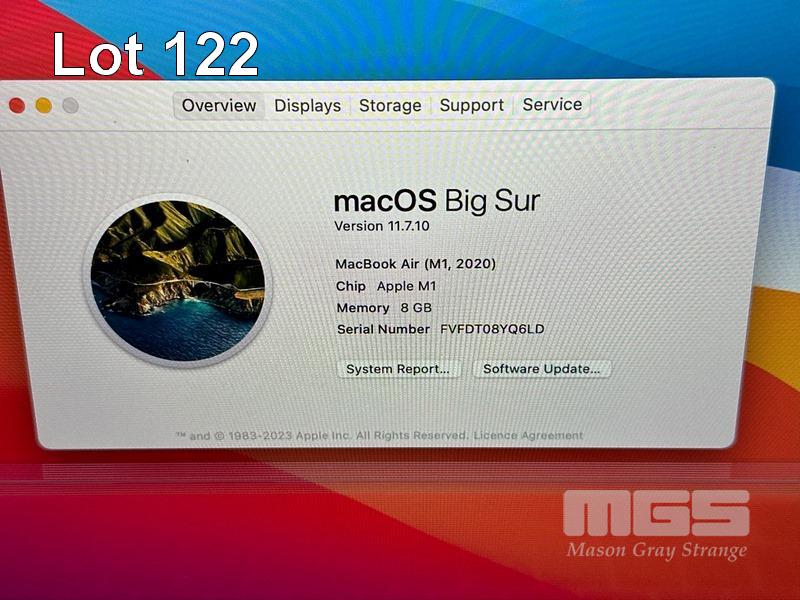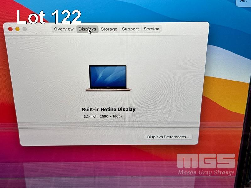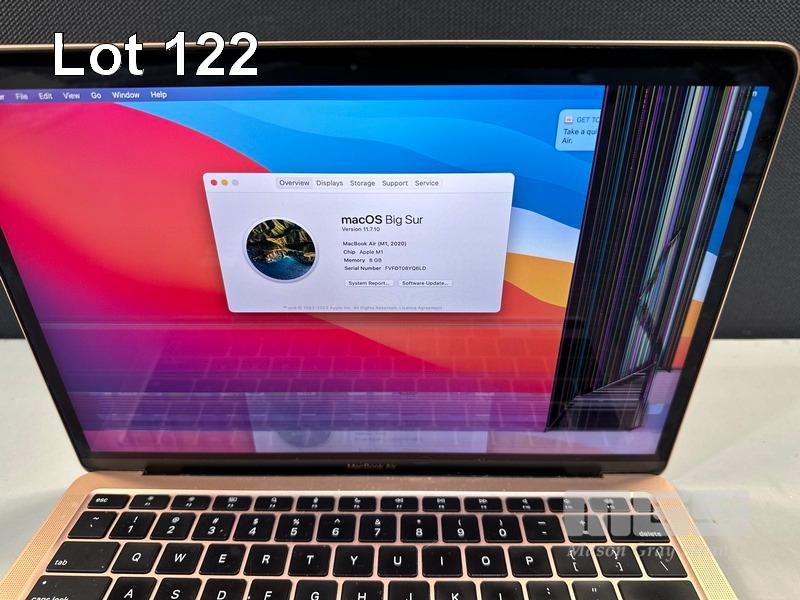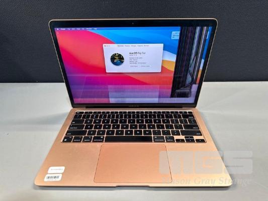 LAPTOP, APPLE MACBOOK AIR (A2337), GOLD, APPLE M1 8 CPU/8 GPU, 8GB RAM, 512GB SSD, 13.3" RETINA DISPLAY (2560x1600), THUNDERBOLT 3, Wi-Fi, BLUETOOTH, MAC OS 11 INSTALLED (NO USB-C POWER SUPPLY) (NOTE: DAMAGED SCREEN, HARDWARE FAULT) S/N:FVFDT08YQ6LD