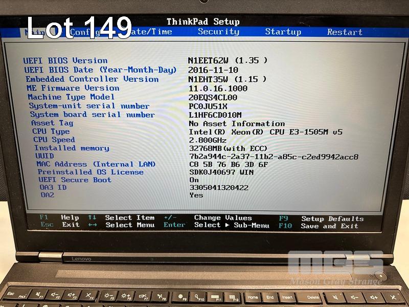 LAPTOP, LENOVO THINKPAD P50 MOBILE WORKSTATION, TYPE 20EQ, XEON E3-1505M v5 @ 2.8GHz, 32GB DDR4 RAM, 512GB M.2 SSD, 15.6" WIDESCREEN (1920x1080), 4GB NVIDIA QUADRO M2000M VIDEO, Wi-Fi, BLUETOOTH, WINDOWS 10 PRO INSTALLED & POWER SUPPLY S/N:PC0JU51X