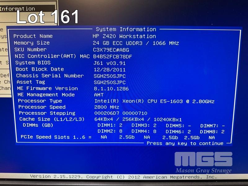 MIDI-TOWER PC, HP Z420 WORKSTATION, XEON E5-1603 @ 2.8GHz, 24GB ECC UDDR3 RAM, 2 x 500GB SATA HDD, DVD-RW, 1GB NVIDIA QUADRO 2000 VIDEO (NO KEYBOARD, NO MOUSE) S/N:SGH250SJPC