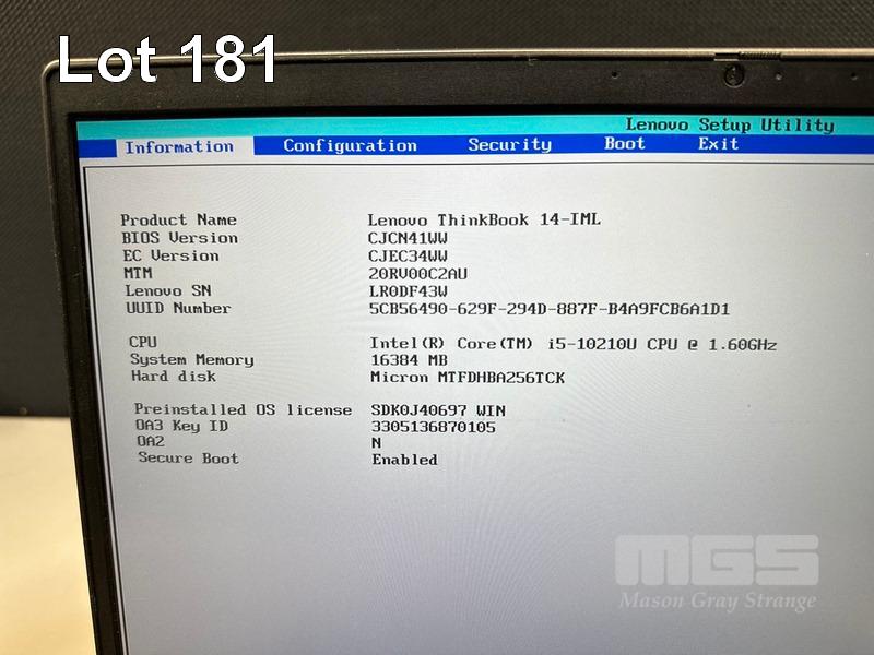 LAPTOP, LENOVO THINKBOOK 14-IML, TYPE 20RV, CORE i5 10210U (10TH GEN) @ 1.6GHz, 16GB RAM, 256GB NVMe M.2 SSD, 14" WIDESCREEN (1920x1080), INTEL UHD GRAPHICS, Wi-Fi, BLUETOOTH, WINDOWS 11 PRO INSTALLED & POWER SUPPLY (NOTE: MARKS ON SCREEN) S/N:LR0DF43W