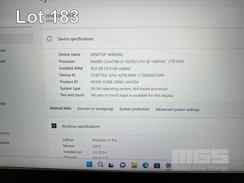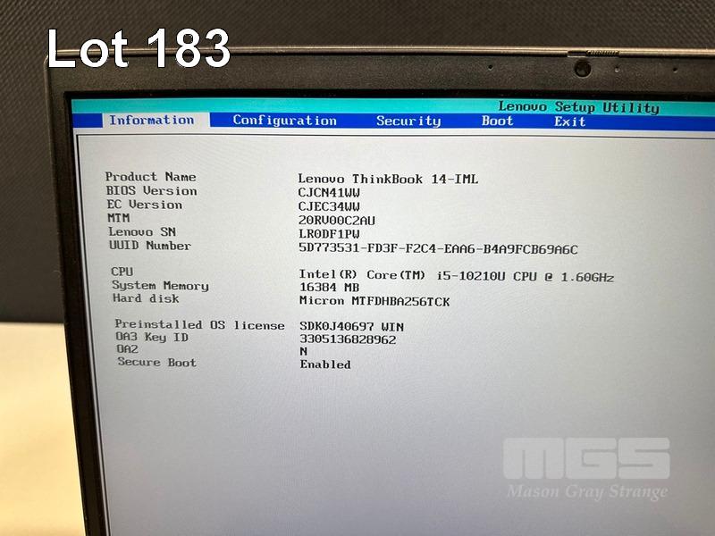 LAPTOP, LENOVO THINKBOOK 14-IML, TYPE 20RV, CORE i5 10210U (10TH GEN) @ 1.6GHz, 16GB RAM, 256GB NVMe M.2 SSD, 14" WIDESCREEN (1920x1080), INTEL UHD GRAPHICS, Wi-Fi, BLUETOOTH, WINDOWS 11 PRO INSTALLED & POWER SUPPLY (NOTE: MARKS ON SCREEN) S/N:LR0DF1PW