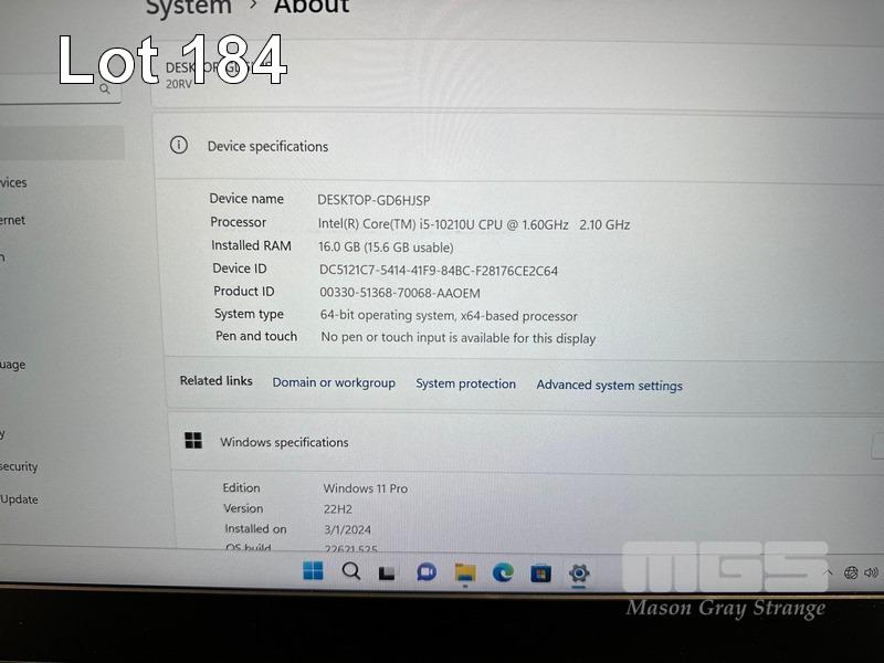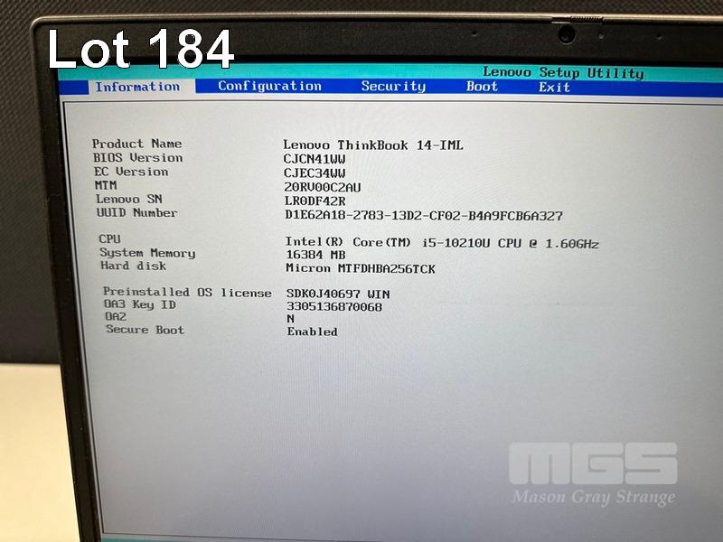 LAPTOP, LENOVO THINKBOOK 14-IML, TYPE 20RV, CORE i5 10210U (10TH GEN) @ 1.6GHz, 16GB RAM, 256GB NVMe M.2 SSD, 14" WIDESCREEN (1920x1080), INTEL UHD GRAPHICS, Wi-Fi, BLUETOOTH, WINDOWS 11 PRO INSTALLED & POWER SUPPLY (NOTE: DENTS TO CASING, MARKS ON SCREEN) S/N:LR0DF42R