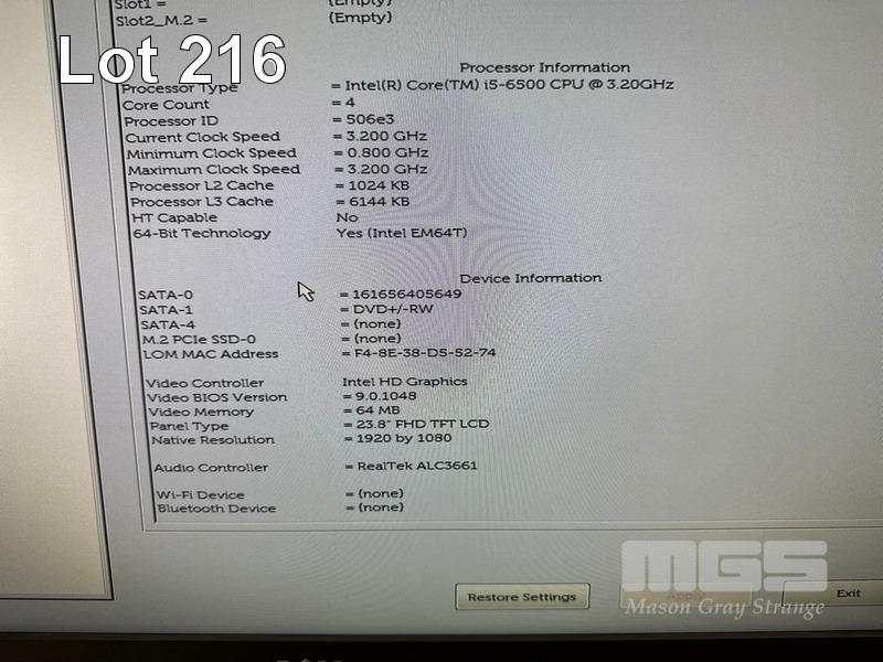 ALL-IN-ONE PC, DELL OPTIPLEX 7440, CORE i5 6500 (6TH GEN) @ 3.2GHz, 8GB DDR4 RAM, 256GB SSD, DVD-RW, INBUILT 23.8" FHD WIDESCREEN (1920x1080), INTEL HD VIDEO, WEBCAM, 8 x USB, WINDOWS 10 HOME INSTALLED, KEYBOARD & MOUSE S/N:51S9HD2