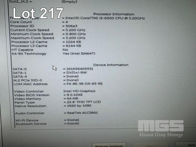 ALL-IN-ONE PC, DELL OPTIPLEX 7440, CORE i5 6500 (6TH GEN) @ 3.2GHz, 8GB DDR4 RAM, 256GB SSD, DVD-RW, INBUILT 23.8" FHD WIDESCREEN (1920x1080), INTEL HD VIDEO, WEBCAM, 8 x USB, WINDOWS 10 HOME INSTALLED, KEYBOARD & MOUSE S/N:51W6HD2