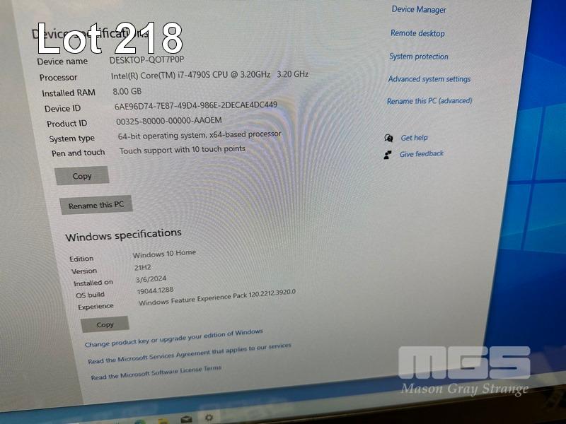 ALL-IN-ONE PC, DELL OPTIPLEX 9030, CORE i7 4790S (4TH GEN) @ 3.2GHz, 8GB DDR3 RAM, 256GB SSD, DVD-RW, INBUILT 23" FHD LCD TOUCHSCREEN (1920x1080), INTEL HD VIDEO, WEBCAM, 8 x USB, WINDOWS 10 HOME INSTALLED, KEYBOARD & MOUSE S/N:FJR0B92