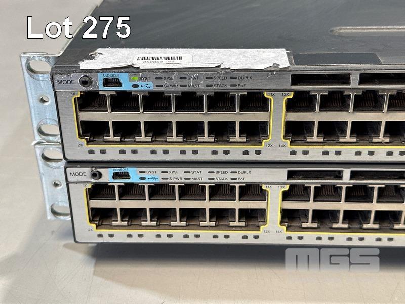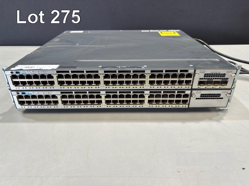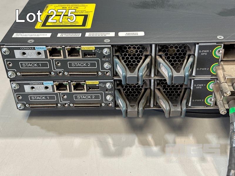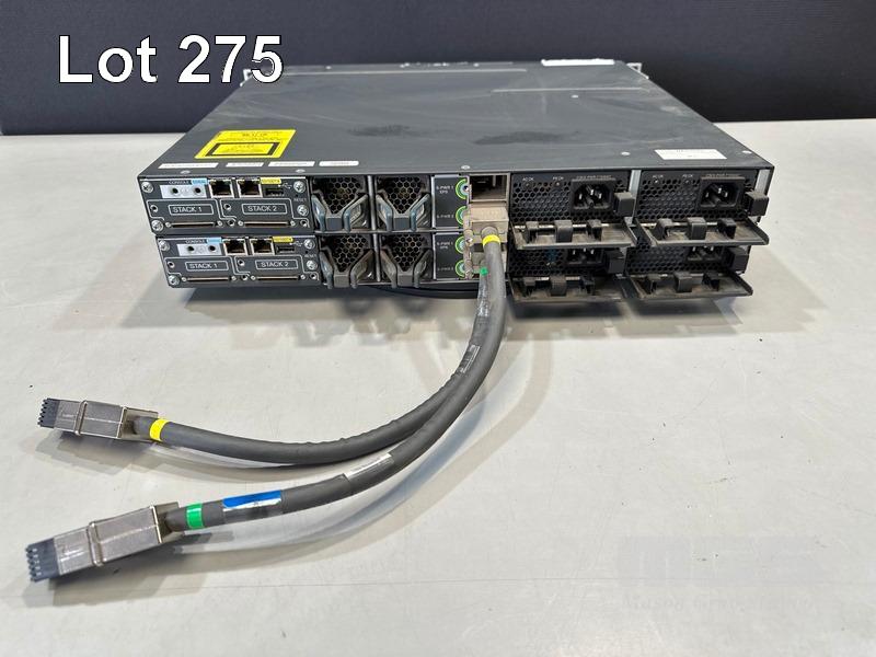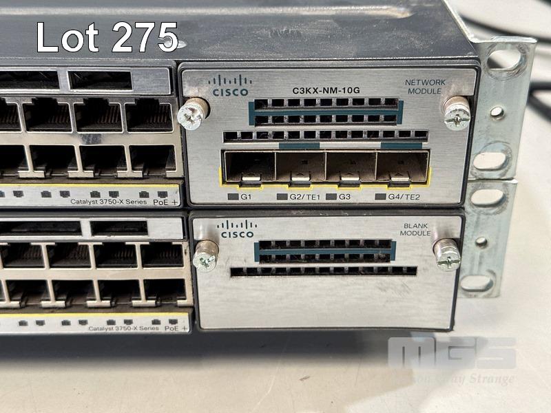 2 x CISCO CATALYST 3750-X SERIES 48-PORT SWITCHES, WS-C3750X-48P-S V01 WITH 1 x C3KX-NM-10G NETWORK MODULE & STACK CABLES S/N:FDO1452R0CB,FDO1503P0R8