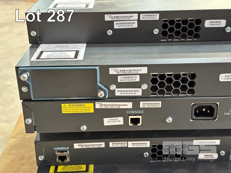 6 x CISCO CATALYST SWITCHES, MODELS INC. - WS-C2960S-24TS-S V03 - WS-C2960S-24PS-L V03 - WS-C3560-48-PS-S V05 - WS-C3560-48PS-S V05 - WS-C2960G-24TC-L V02 - WS-C3560-24PS-S V07 S/N:FOC1643X2LZ, FOC1623X05Z, FD01233X1U3, FDO1243Y3JF, FOC1102Z9FX, FDO1252X5DR