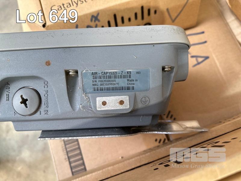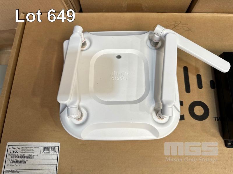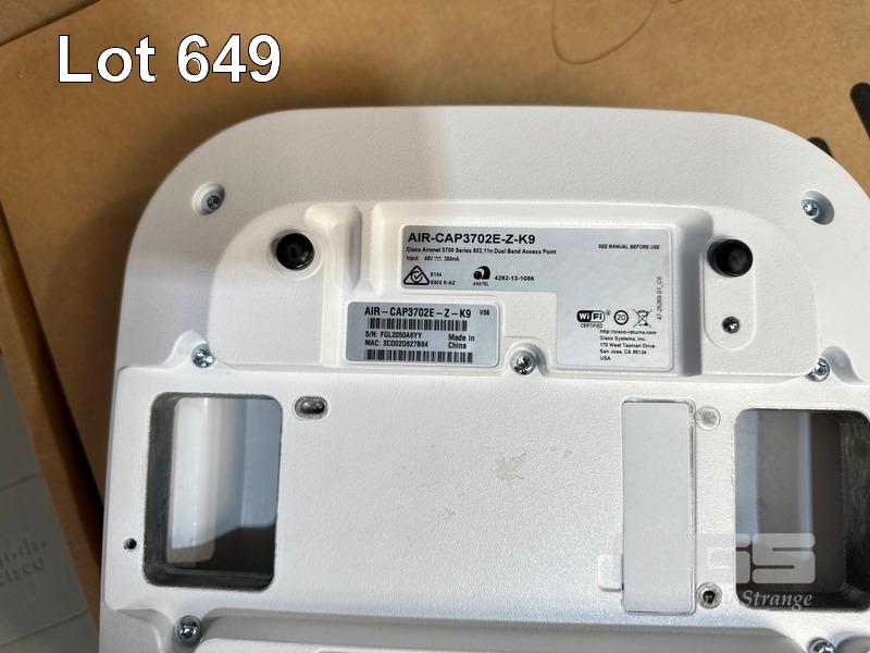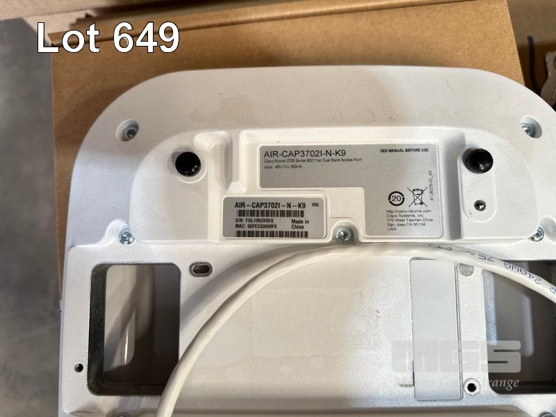 46 x CISCO AIRONET 3700 SERIES WIRELESS ACCESS POINTS, AIR-CAP3702I-N-K9 6 x CISCO AIRONET 3700 SERIES WIRELESS ACCESS POINTS, AIR-CAP3702I-Z-K9 3 x CISCO AIRONET 3700 SERIES WIRELESS ACCESS POINTS, AIR-CAP3702E-Z-K9 1 x CISCO AIRONET OUTDOOR 1530 SERIES WIRELESS ACCESS POINT, AIR-CAP1532I-Z-K9 2 x CISCO 2.4GHz/5GHz 13 dBi PATCH ANTENNAS, AIR-ANT2513P4M-N 2 x CISCO AIRONET POWER INJECTORS