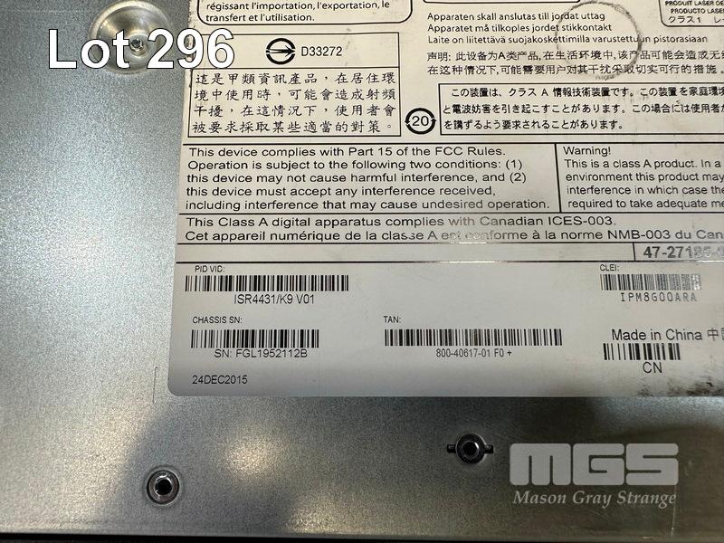 CISCO 4400 SERIES INTEGRATED SERVICES ROUTER, ISR4431/K9 V01 2 x PSU (NO CABLES) S/N:FGL1952112B