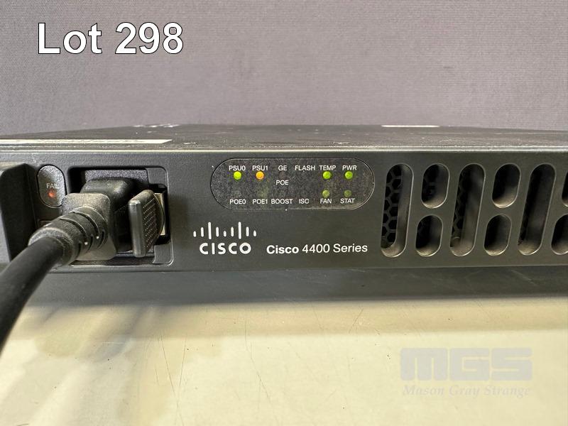 CISCO 4400 SERIES INTEGRATED SERVICES ROUTER, ISR4431/K9 V01 2 x PSU (NO CABLES) (NOTE: 1 x PSU FAULTY) S/N:FGL1952113E