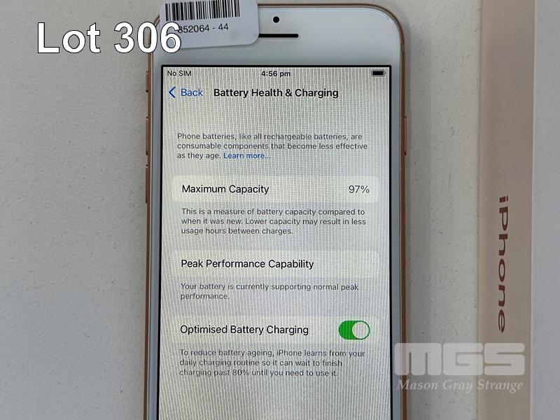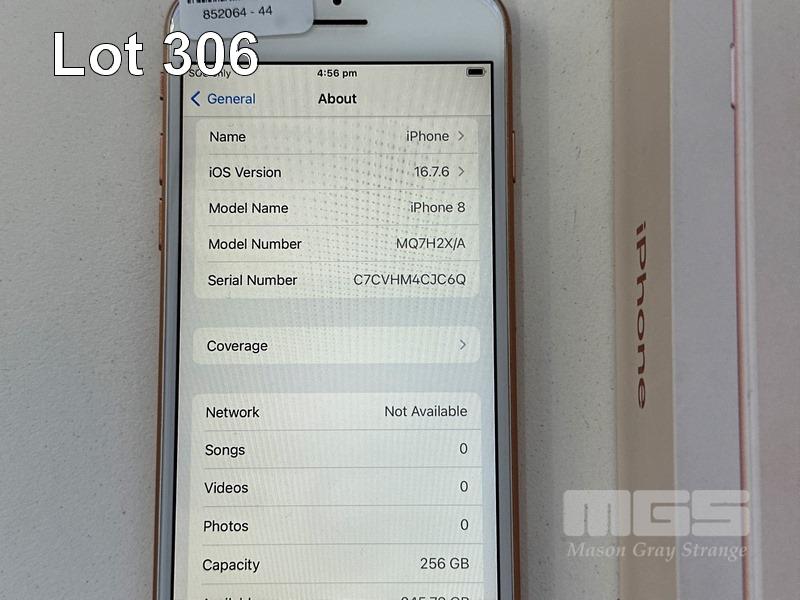 APPLE iPHONE 8, 256GB, GOLD, MODEL MQ7H2X/A, BATTERY HEALTH 97% (NO CABLE, NO CHARGER) S/N:C7CVHM4CJC6Q