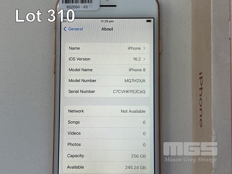APPLE iPHONE 8, 256GB, GOLD, MODEL MQ7H2X/A, BATTERY HEALTH 85% (NO CABLE, NO CHARGER) S/N:C7CVHK9SJC6Q