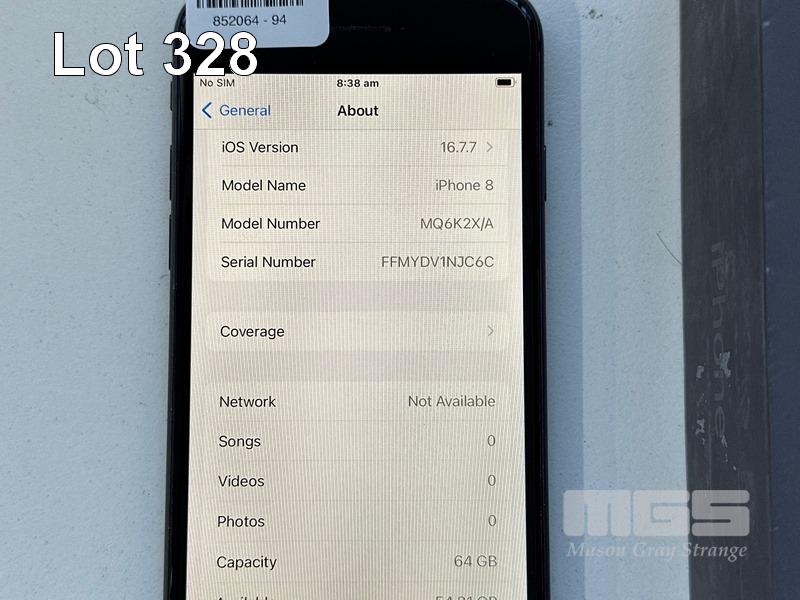 APPLE iPHONE 8, 64GB, SPACE GREY, MODEL MQ6K2X/A, BATTERY HEALTH 93% (NO CABLE, NO CHARGER) S/N:FFMYDV1NJC6C