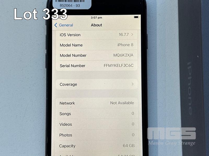 APPLE iPHONE 8, 64GB, SPACE GREY, MODEL MQ6K2X/A, BATTERY HEALTH 92% (NO CABLE, NO CHARGER) S/N:FFMYKELFJC6C