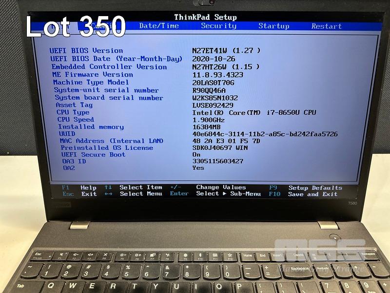 LAPTOP, LENOVO THINKPAD T580, TYPE 20LA, CORE i7 8650U (8TH GEN) @ 1.9GHz, 16GB DDR4 RAM, 512GB NVMe M.2 SSD, 15.6" WIDESCREEN (1920x1080), INTEL UHD GRAPHICS, Wi-Fi, BLUETOOTH, WINDOWS 11 PRO INSTALLED (NO USB-C POWER SUPPLY) (NOTE: MARKS ON SCREEN) S/N:R90QQ46A