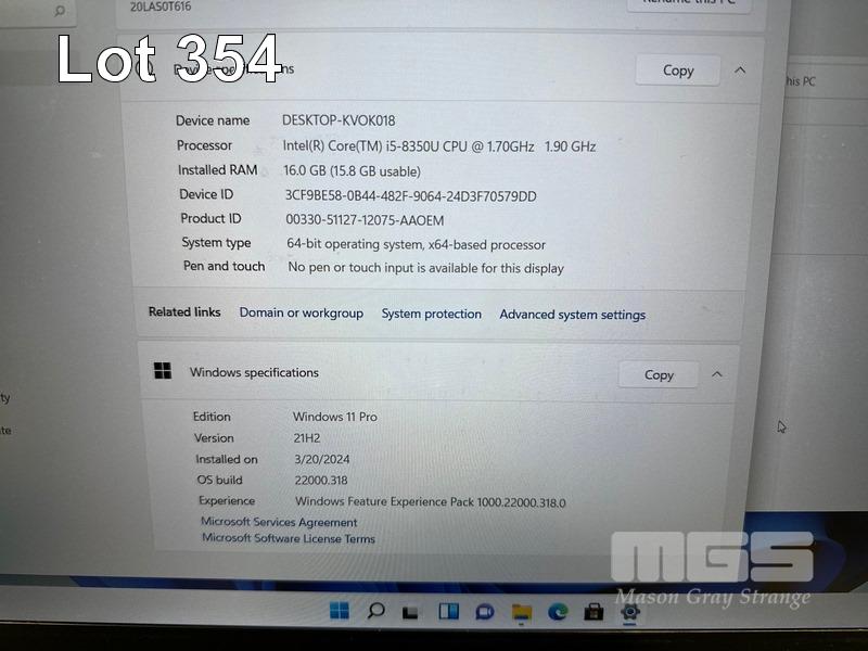 LAPTOP, LENOVO THINKPAD T580, TYPE 20LA, CORE i5 8350U (8TH GEN) @ 1.7GHz, 16GB DDR4 RAM, 256GB NVMe M.2 SSD, 15.6" WIDESCREEN (1920x1080), INTEL UHD GRAPHICS, Wi-Fi, BLUETOOTH, WINDOWS 11 PRO INSTALLED (NO USB-C POWER SUPPLY) (NOTE: MARKS ON SCREEN) S/N:R90QKP9L