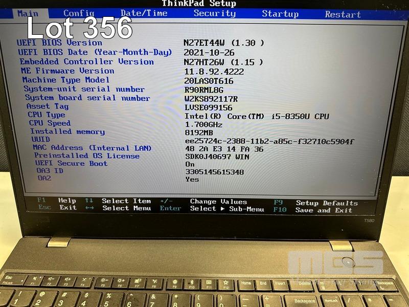 LAPTOP, LENOVO THINKPAD T580, TYPE 20LA, CORE i5 8350U (8TH GEN) @ 1.7GHz, 8GB DDR4 RAM, 256GB NVMe M.2 SSD, 15.6" WIDESCREEN (1920x1080), INTEL UHD GRAPHICS, Wi-Fi, BLUETOOTH, WINDOWS 11 PRO INSTALLED (NO USB-C POWER SUPPLY) S/N:R90RML8G