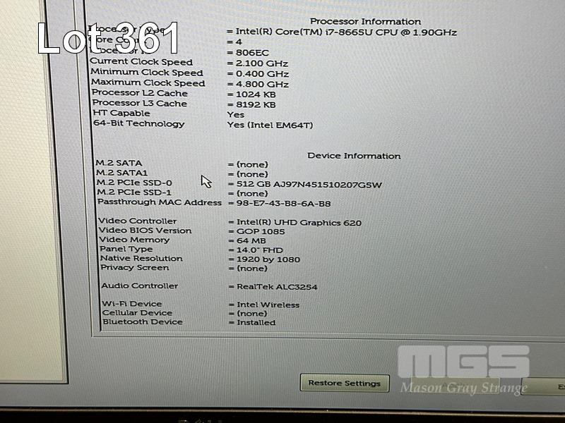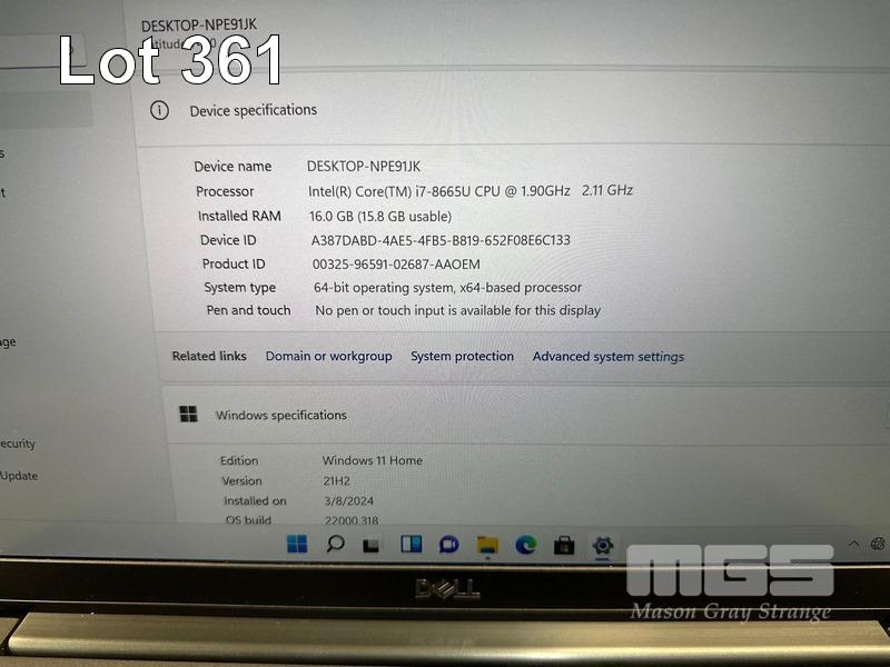 LAPTOP, DELL LATITUDE 7400, CORE i7 8665U (8TH GEN) @ 1.9GHz, 16GB DDR4 RAM, 512GB NVMe M.2 SSD, 14" WIDESCREEN (1920x1080), INTEL UHD GRAPHICS 620, Wi-Fi, BLUETOOTH, WINDOWS 11 HOME INSTALLED & POWER SUPPLY (NOTE: MINOR MARKS ON SCREEN) S/N:36HK0Z2