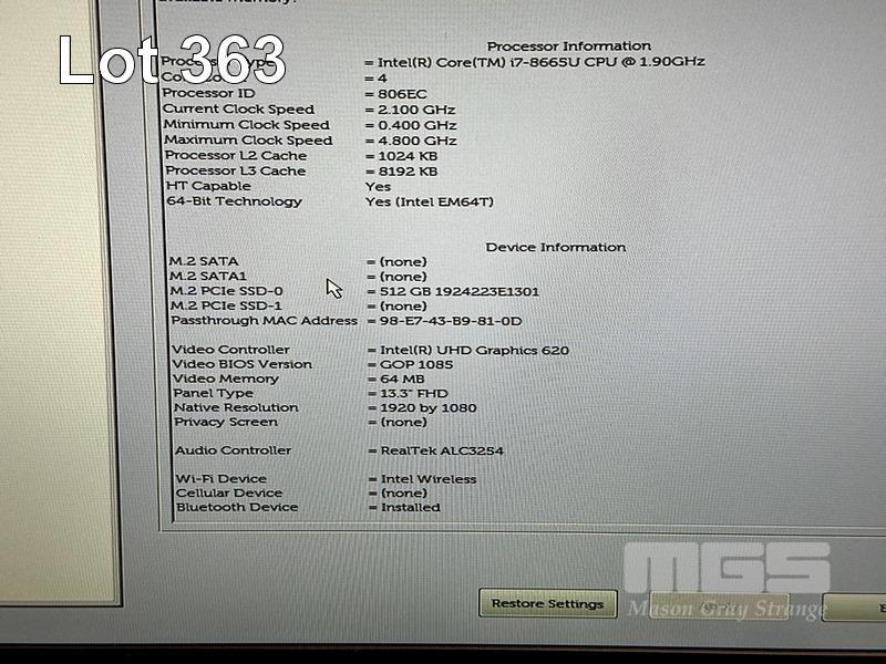 LAPTOP, DELL LATITUDE 7300, CORE i7 8665U (8TH GEN) @ 1.9GHz, 16GB DDR4 RAM, 512GB NVMe M.2 SSD, 13.3" WIDESCREEN (1920x1080), INTEL UHD GRAPHICS 620, Wi-Fi, BLUETOOTH, WINDOWS 11 HOME INSTALLED & POWER SUPPLY S/N:2N2B6Y2
