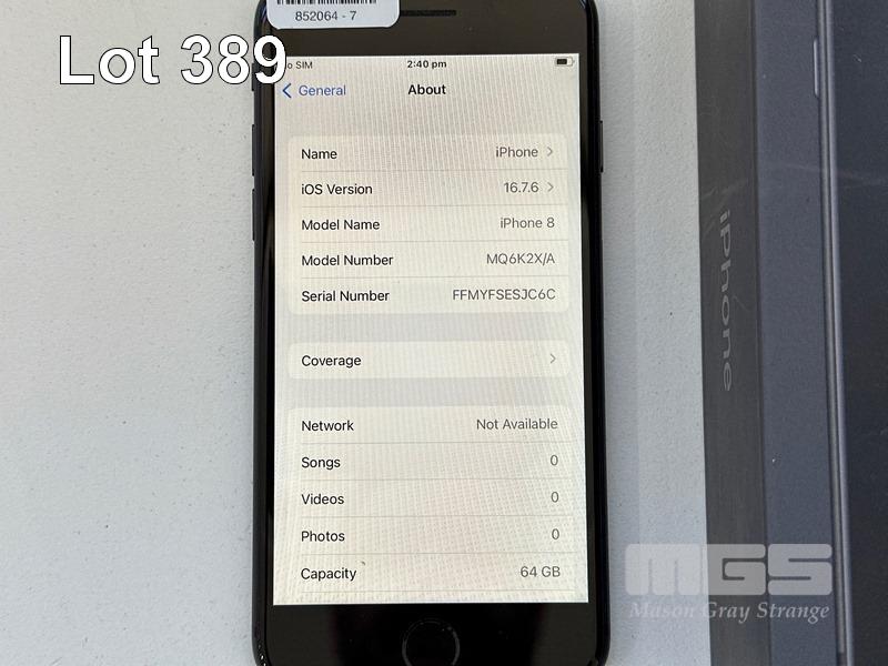 APPLE iPHONE 8, 64GB, SPACE GREY, MODEL MQ6K2X/A, BATTERY HEALTH 88% (NO CABLE, NO CHARGER) S/N:FFMYFSESJC6C
