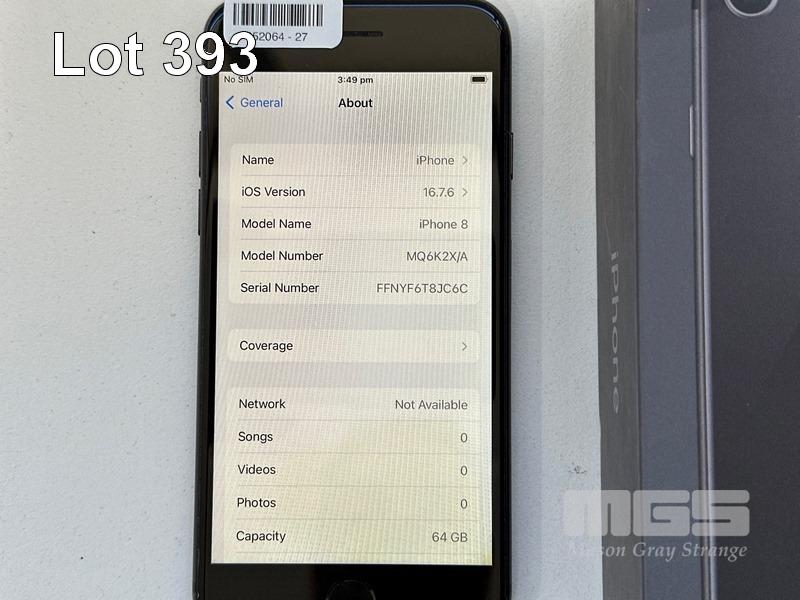 APPLE iPHONE 8, 64GB, SPACE GREY, MODEL MQ6K2X/A, BATTERY HEALTH 87% (NO CABLE, NO CHARGER) S/N:FFNYF6T8JC6C