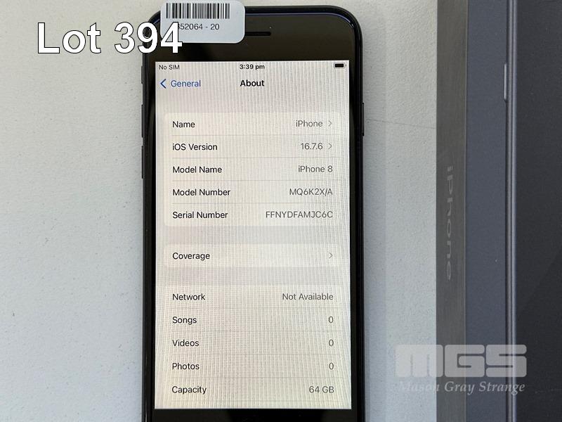 APPLE iPHONE 8, 64GB, SPACE GREY, MODEL MQ6K2X/A, BATTERY HEALTH 87% (NO CABLE, NO CHARGER) S/N:FFNYDFAMJC6C