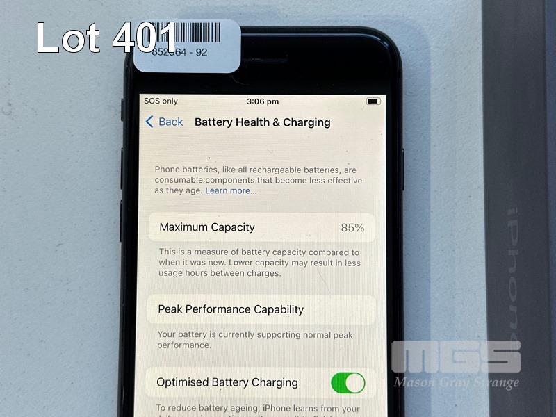 APPLE iPHONE 8, 64GB, SPACE GREY, MODEL MQ6K2X/A, BATTERY HEALTH 85% (NO CABLE, NO CHARGER) S/N:FFNYD2G6JC6C