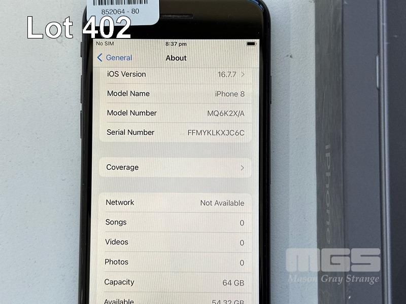 APPLE iPHONE 8, 64GB, SPACE GREY, MODEL MQ6K2X/A, BATTERY HEALTH 85% (NO CABLE, NO CHARGER) S/N:FFMYKLKXJC6C
