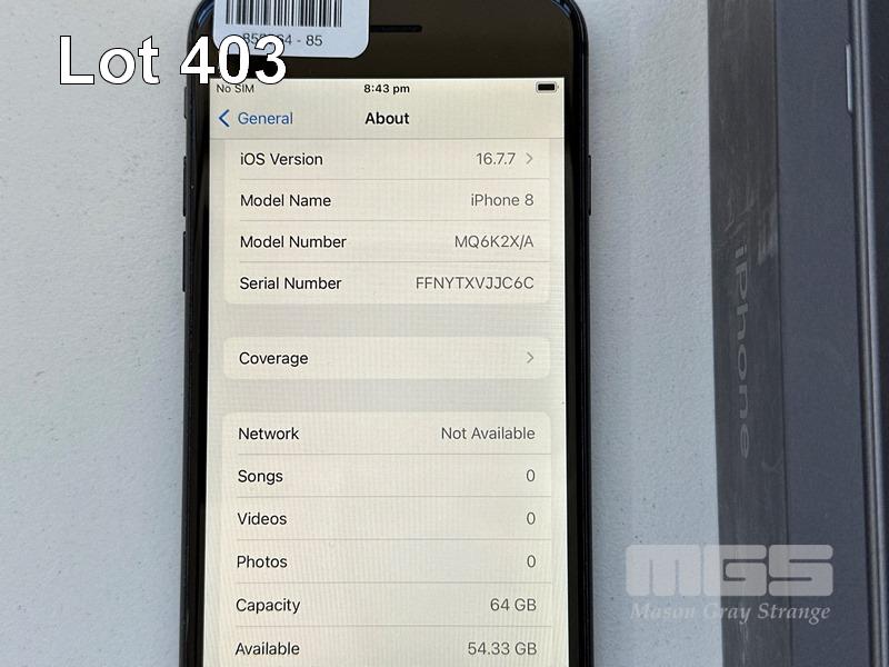 APPLE iPHONE 8, 64GB, SPACE GREY, MODEL MQ6K2X/A, BATTERY HEALTH 84% (NO CABLE, NO CHARGER) S/N:FFNYTXVJJC6C