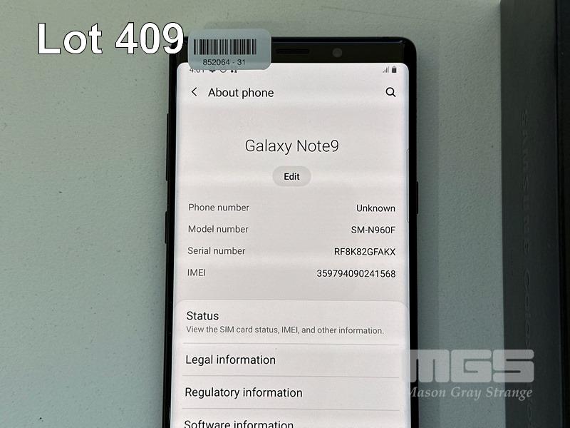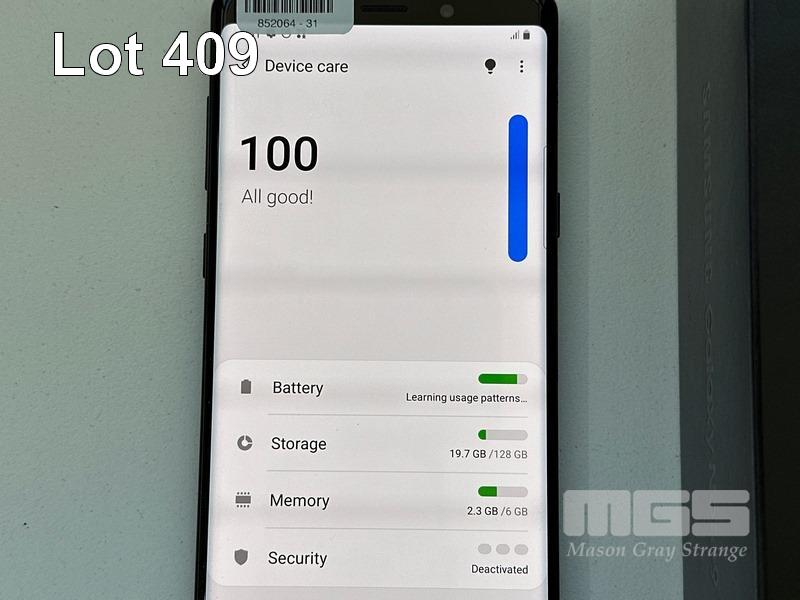 SAMSUNG GALAXY NOTE9 SMARTPHONE, 128GB, BLACK, MODEL SM-N960F (NO USB-C CABLE, NO CHARGER) S/N:RF8K82GFAKX