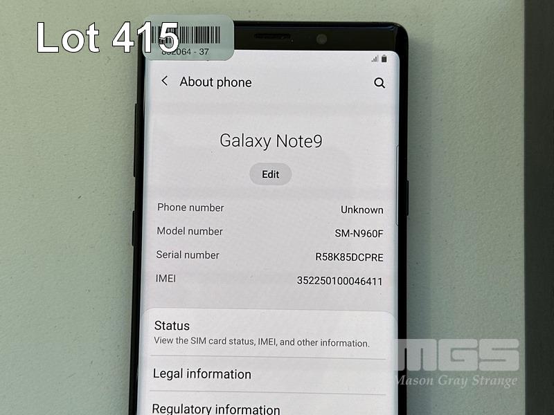 SAMSUNG GALAXY NOTE9 SMARTPHONE, 128GB, BLACK, MODEL SM-N960F (NO USB-C CABLE, NO CHARGER) S/N:R58K85DCPRE