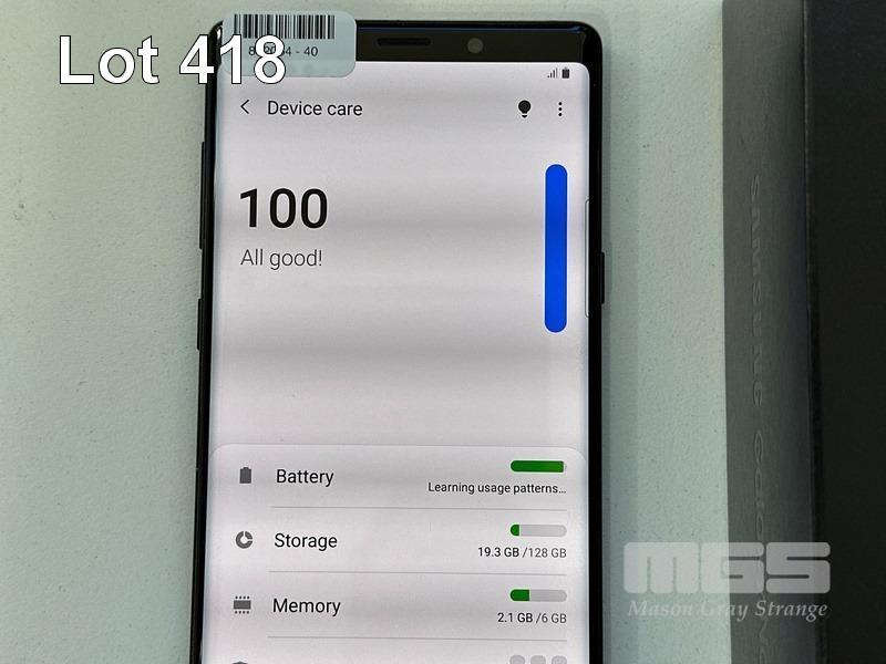 SAMSUNG GALAXY NOTE9 SMARTPHONE, 128GB, BLACK, MODEL SM-N960F (NO USB-C CABLE, NO CHARGER) S/N:RF8K82GE6HA