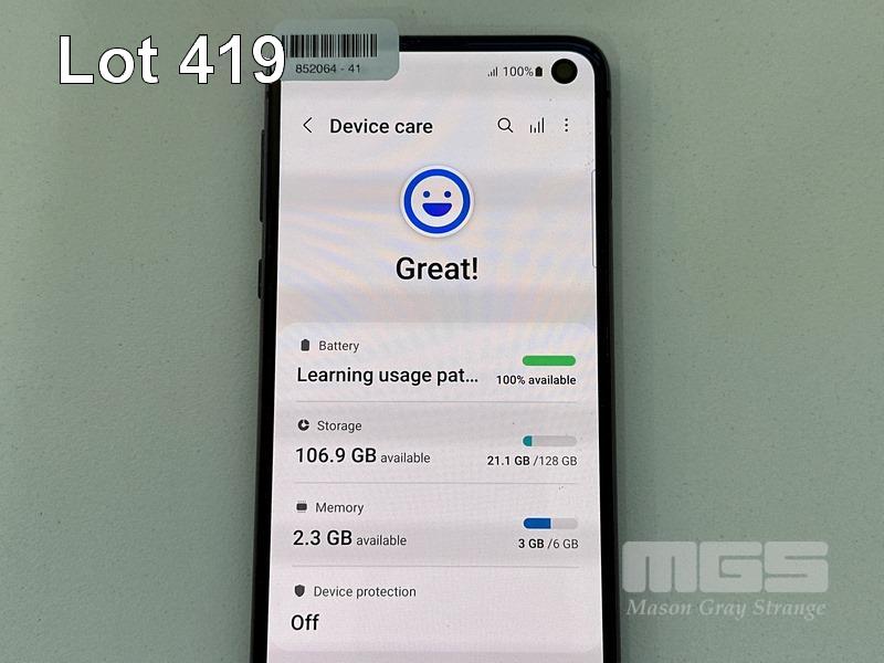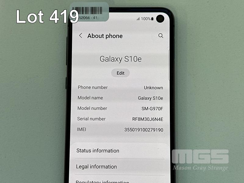 SAMSUNG GALAXY S10e SMARTPHONE, 128GB, MODEL SM-G970F (NO USB-C CABLE, NO CHARGER) S/N:RF8M30J6N4E