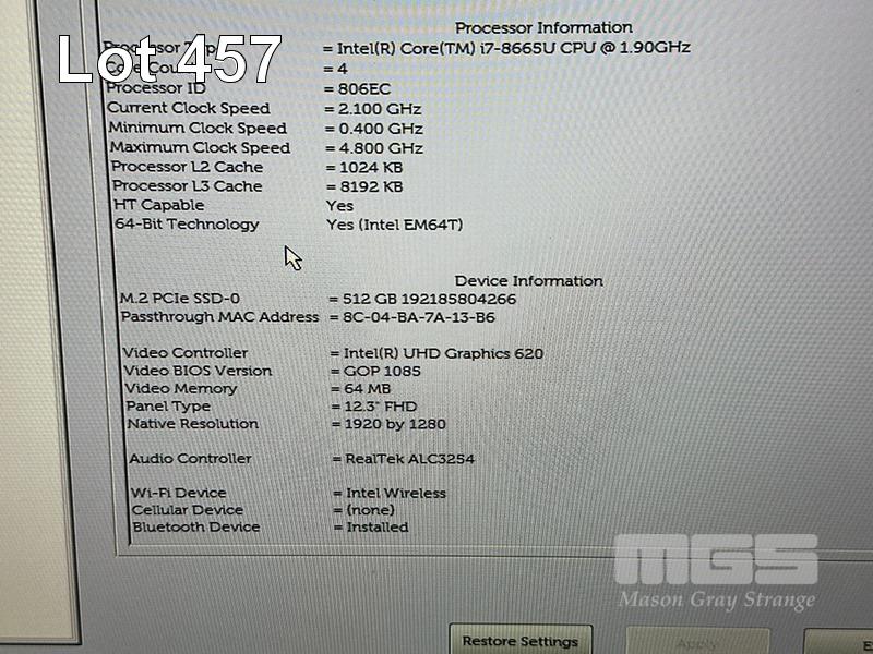TABLET PC, DELL LATITUDE 7200, CORE i7 8665U (8TH GEN) @ 1.9GHz, 16GB DDR3 RAM, 512GB NVMe M.2 SSD, 13.3" TOUCHSCREEN (1920x1080), INTEL UHD GRAPHICS, Wi-Fi, BLUETOOTH, WINDOWS 11 PRO INSTALLED, KEYBOARD & USB-C POWER SUPPLY S/N:71QV7Y2