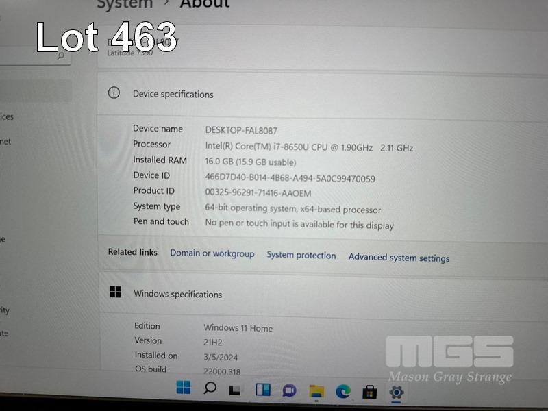 LAPTOP, DELL LATITUDE 7390, CORE i7 8650U (8TH GEN) @ 1.9GHz, 16GB DDR4 RAM, 512GB M.2 SSD, 13.3" WIDESCREEN (1920x1080), INTEL UHD GRAPHICS 620, Wi-Fi, BLUETOOTH, WINDOWS 11 HOME INSTALLED & POWER SUPPLY (NOTE: MINOR MARKS ON SCREEN) S/N:FK8CSQ2